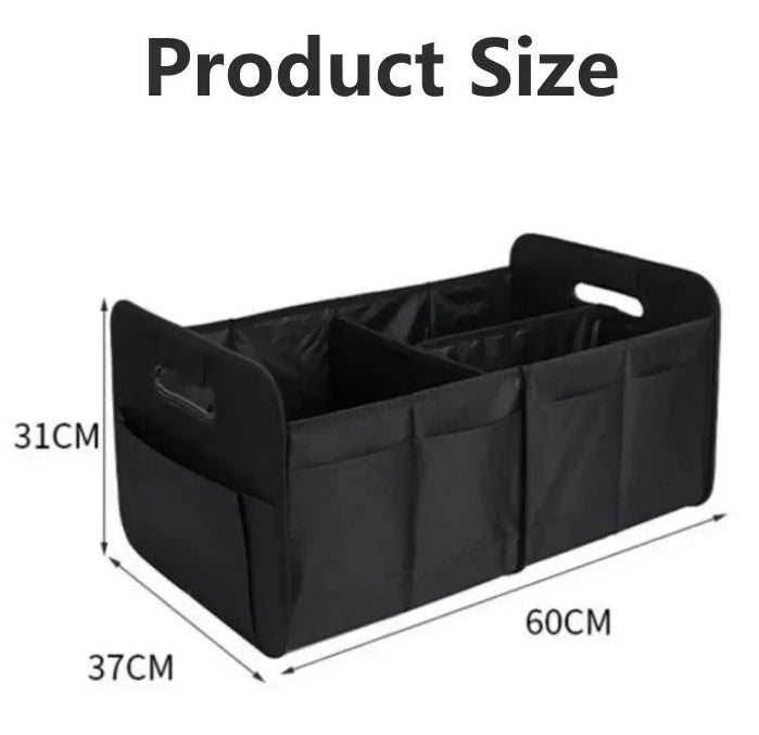 Engineered for versatility, it opens into a spacious multi-section organiser and folds flat when not in use — perfect for daily commutes, weekend travels, or maintaining a polished look in your car at all times. With reinforced sides and a stable base, it keeps groceries, tools, accessories and travel essentials securely in place.